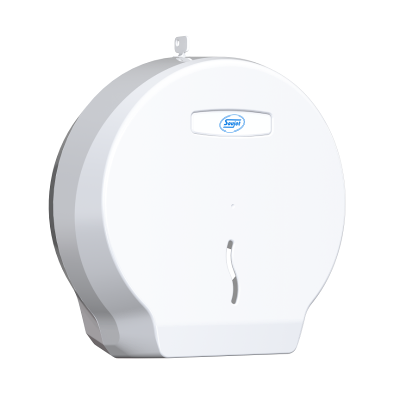 Indicado para locais com grande fluxo de pessoas, o porta rolão Soujet oferece maior autonomia de uso ao trabalhar com rolos de 300 e 500 metros, reduzindo a frequência de trocas e otimizando a rotina de manutenção.